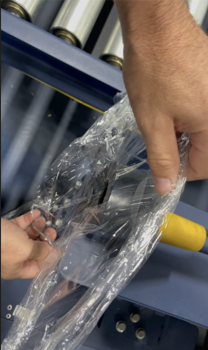 Imperfections in the film create a weakness in the film that causes a break as the film is being delivered to the load.
