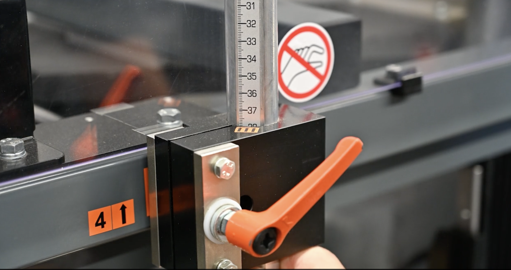 When the magazine is adjusted too high/low, it may cause incorrect folding of the outer flaps. The outer flap locks itself in the outer flap folders because the blank is held in the incorrect position by the suction frame. When the case is pushed into the side belts it cannot correct itself anymore and ends up too far between the side belts. This results in bad taping and or cutting.