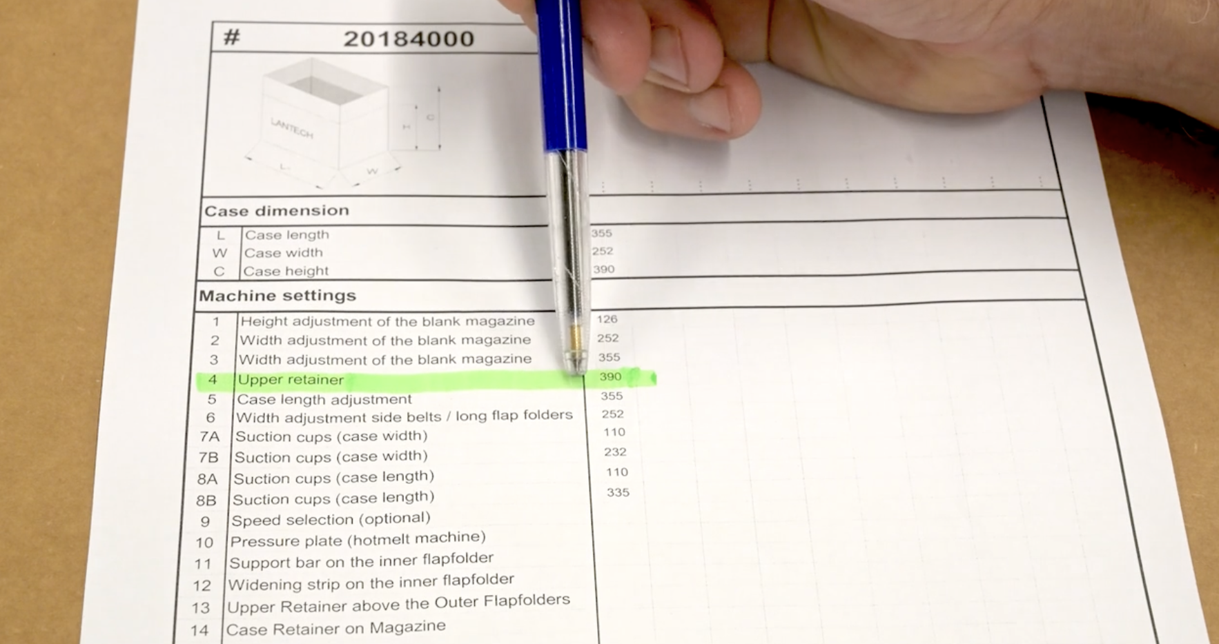 In this example, upper retainer settings of 390